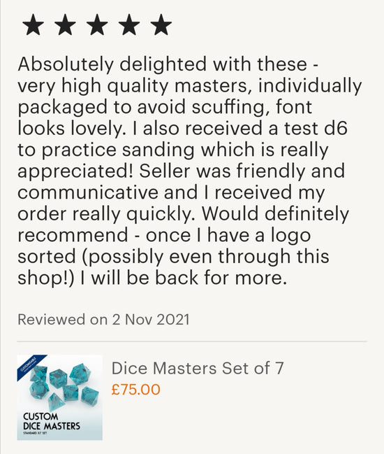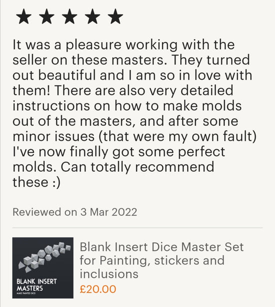 If you're an experienced maker or you've just started looking into dice making - I'm here to help! Use the chat pop up to ask any questions you might have about our products, customisations or dice making in general