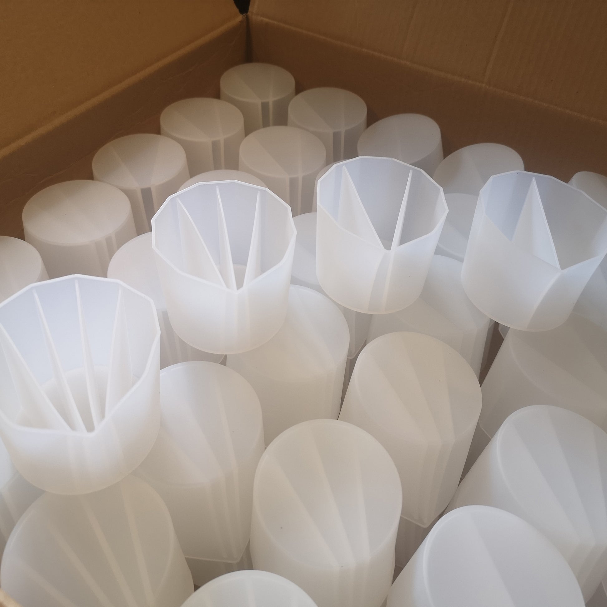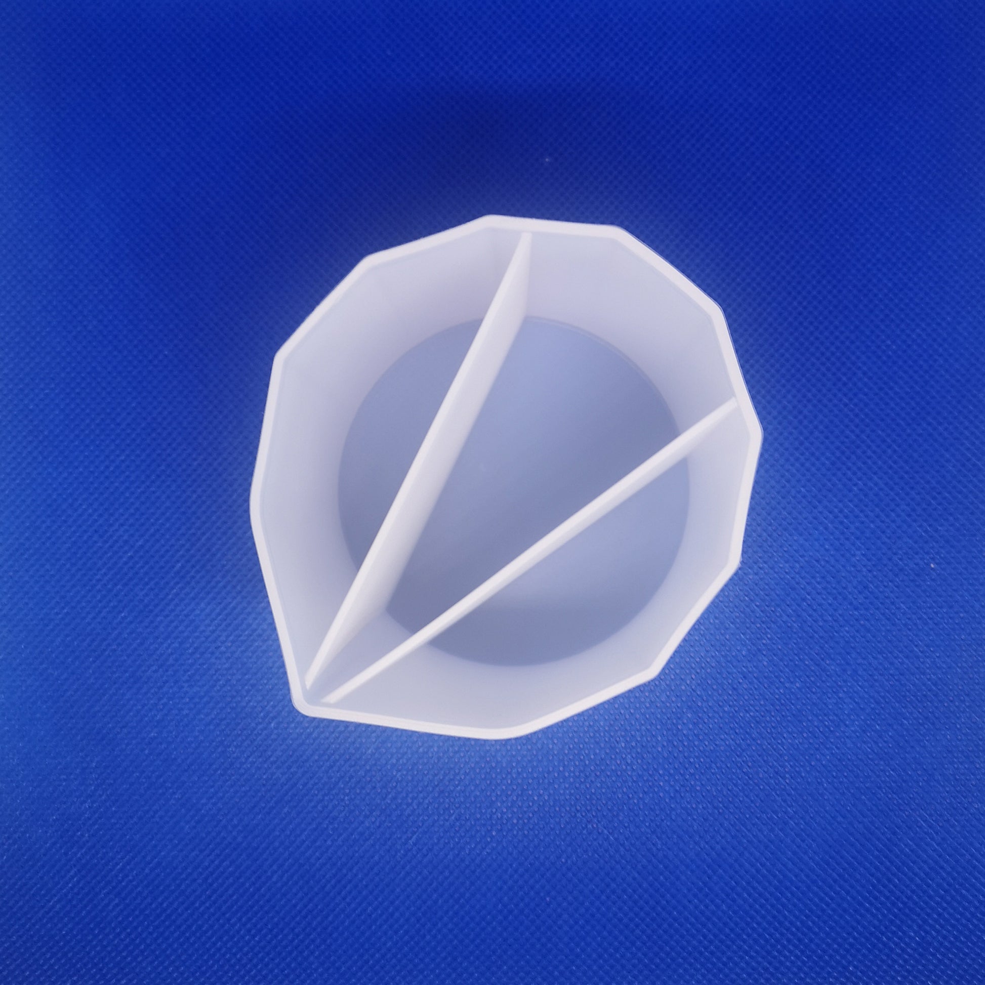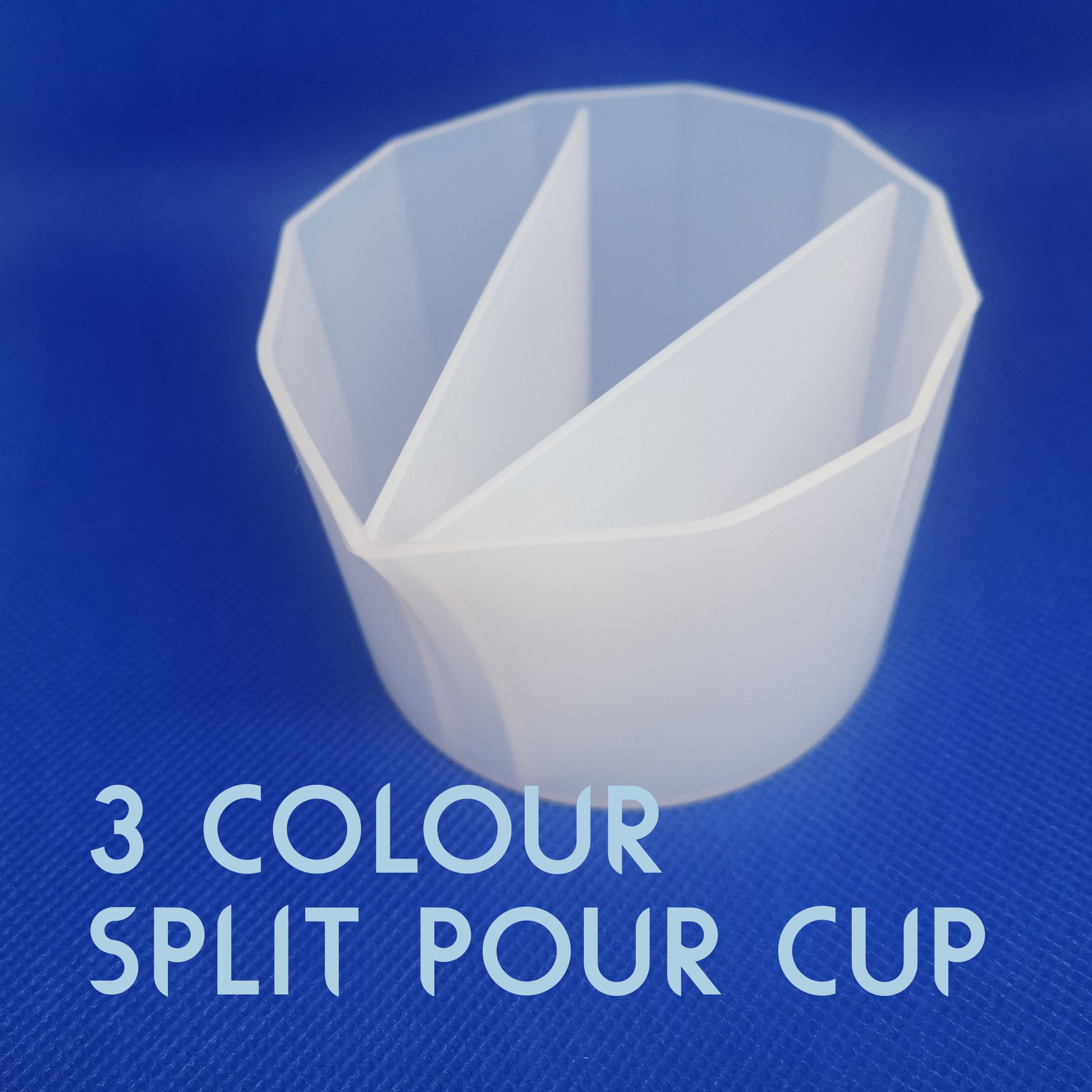 Our silicone split pour cups are made from a soft silicone so that they can be reused time and time again. The pouring spout enables easy pouring in the tightest of moulds. Each cup holds up to 200ml (split between all chambers) for pouring all sizes (or multiple sets) of dice, resin moulds or even paint pours!